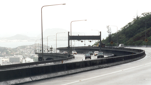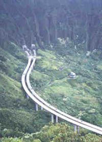 nation's most beautiful Interstates. For environmental and historic preservation reasons, H-3 was built mostly as tunnel or viaduct. That contributed to the highway's $1.3 billion price tag (probably the most expensive Interstate per mile, until Boston's "Big Dig" blew that record out of the water), but at least the designers made it a very scenic route. (September 1999)